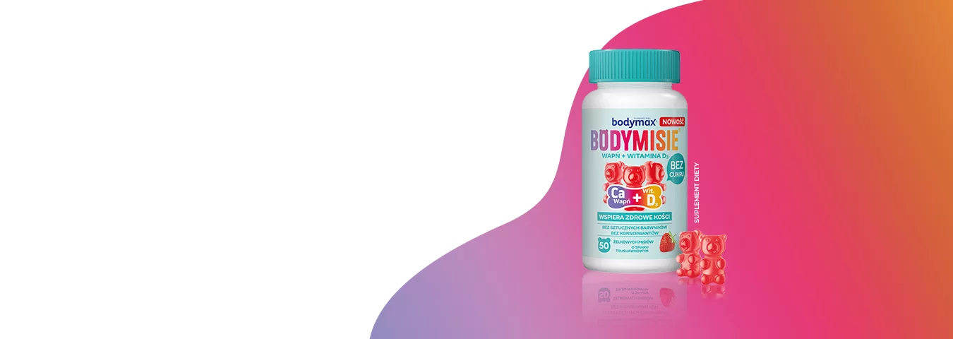 Bodymax® Bodymisie Wapń + Wit. D3 to żelki witaminowe, które można podawać trzylatkom i starszym dzieciom. Pyszny smak zapewnia naturalny, truskawkowy aromat. Bodymisie – żelki z wapniem i witaminą D3 to doskonały sposób na zapewnienie niezbędnych składników dzieciom, które nie są w stanie połknąć tabletki lub ich nie lubią.